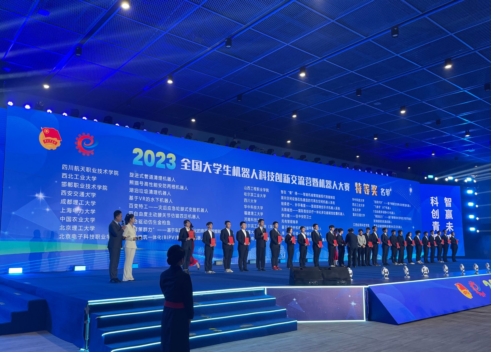 据悉,本次全国大学生机器人科技创新交流营暨机器人大赛是共青团中央、工业和信息化部共同主办的一项具有导向性、示范性和群众性的全国竞赛活动,是共青团服务大学生科技创新的重要载体。本届大赛共吸引来自全国30个省、自治区、直辖市及新疆生产建设兵团的431所高校1017件作品参赛。大赛坚持科创育人、实践育人导向,突出为党育人使命、广泛参与目标、围绕“国之大者”、规范科学公信,持续提升赛事引导力、影响力和公信力,瞄准机器人前沿技术动态、产业发展趋势和人才培养需求,激发大学生学习机器人知识、交流机器人技术、传播机器人文化、投身机器人行业、攻关机器人关键核心技术的积极性、主动性、创造性,推动机器人领域教育、科技、人才融合发展。