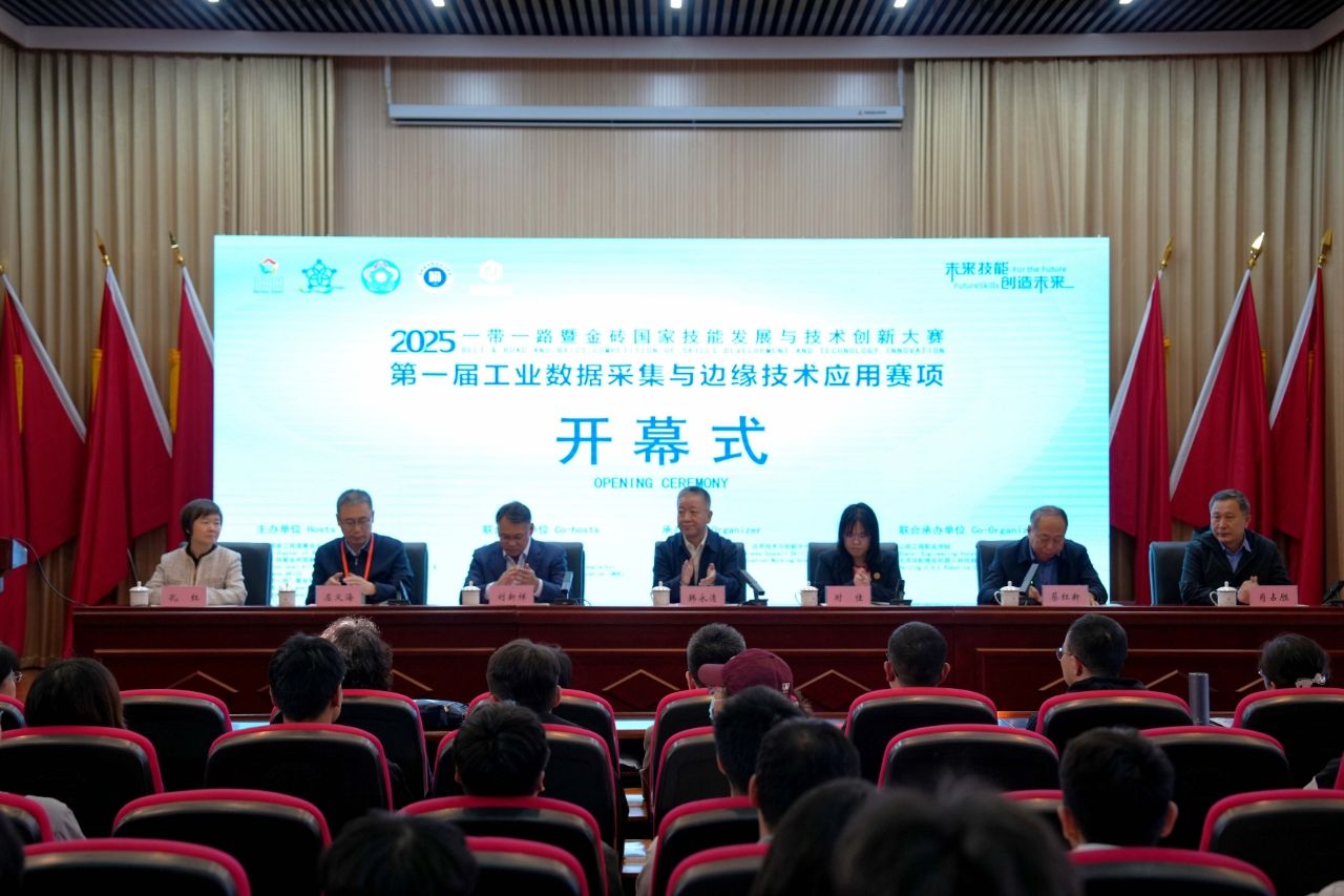 10月17日,2025一带一路暨金砖国家技能发展与技术创新大赛第一届工业数据采集与边缘技术应用赛项在我院开幕。来自全国的127支参赛队伍及百余位指导教师齐聚一堂,共同开启这场聚焦工业互联网核心技术的技能比拼。学院党委书记韩永清,金砖国家技能发展与技术创新大赛组委会执委会竞赛办公室一处副处长时佳,北京华航唯实机器人科技股份有限公司总经理刘新祥,太原工业学院工训中心主任、大赛裁判长左义海,学院电气工程系党总支书记肖占胜、主任孔红出席开幕式。