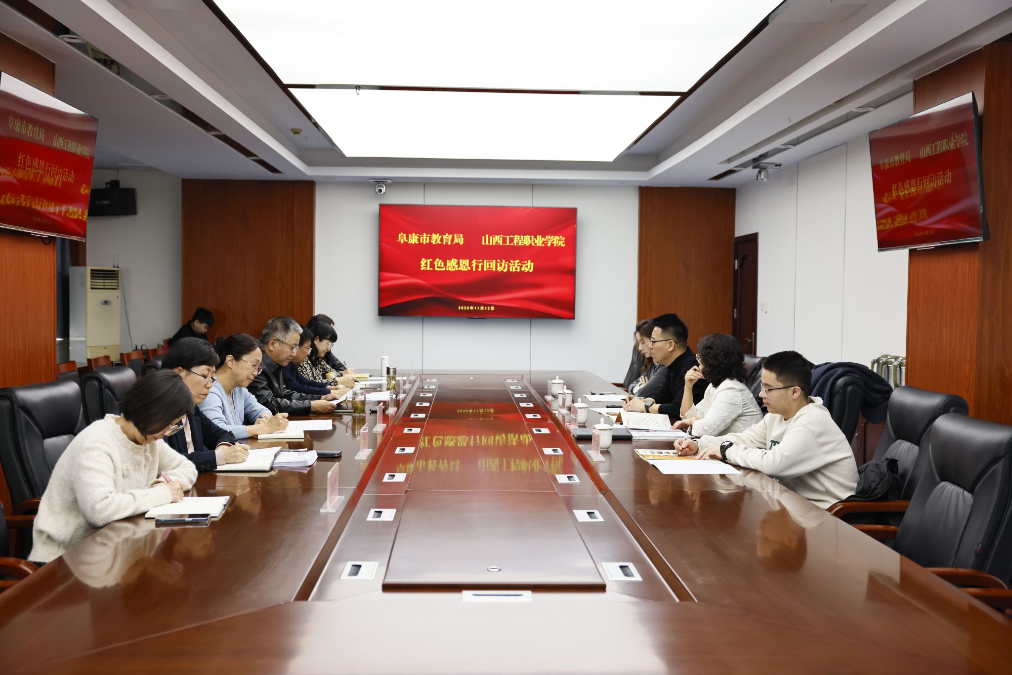 “感恩山西援疆情 共绘晋阜新篇章”红色感恩行活动是阜康市委为铸牢中华民族共同体意识,推动晋阜交流交往向更宽领域、更深层次、更高水平迈进的一次活动。11月12日上午,新疆阜康市教育工委副书记、教育局党组副书记、局长李峰一行四人,来我院开展回访交流。学院党委书记韩永清、副书记李茂林及相关部门负责人参加座谈交流。